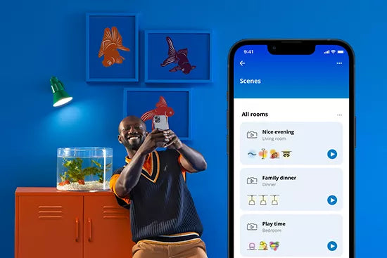 Make your own mix of different colour and white lights modes to create the perfect light ambience for your daily moment. Simply save your new Scene and select it anytime with the WiZ app or voice.